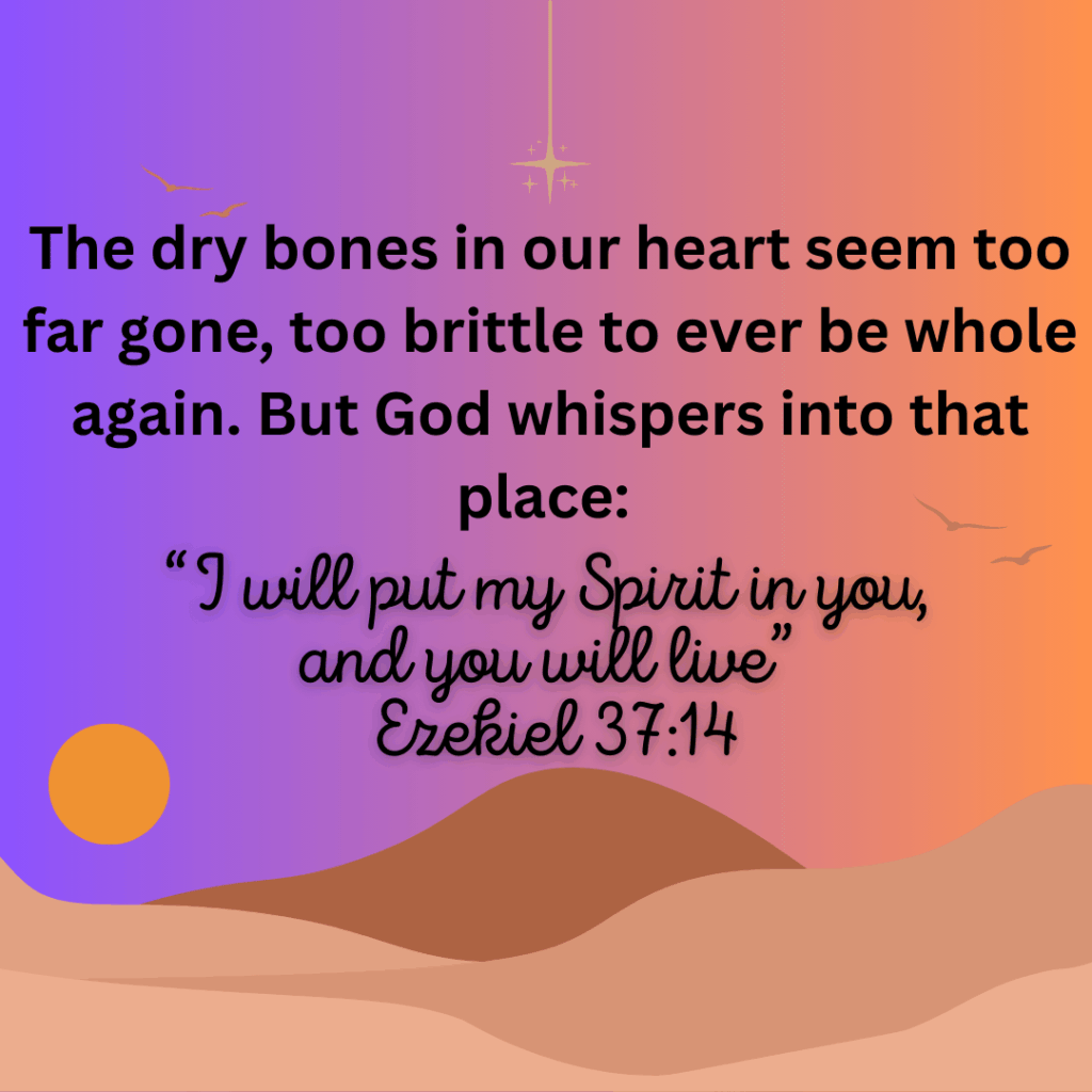 This vision wasn’t only for Israel in their exile. It’s also for us in our valleys of grief. When we feel scattered and lifeless, God reminds us that He is a restorer. He doesn’t minimize the reality of our loss, but He meets us IN it with His Spirit, the very breath of life.